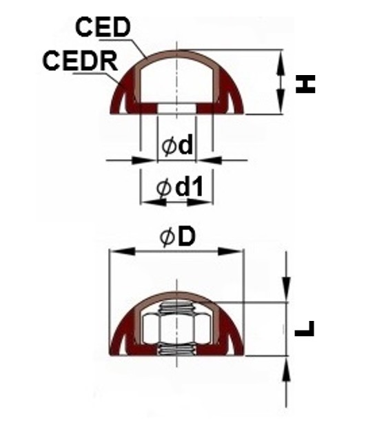 - Mode de fixation : une fois l'embase plastique CEDR enfoncée sur la vis ou l'écrou, le capuchon CED se clipse dessus et ne peut plus être retiré